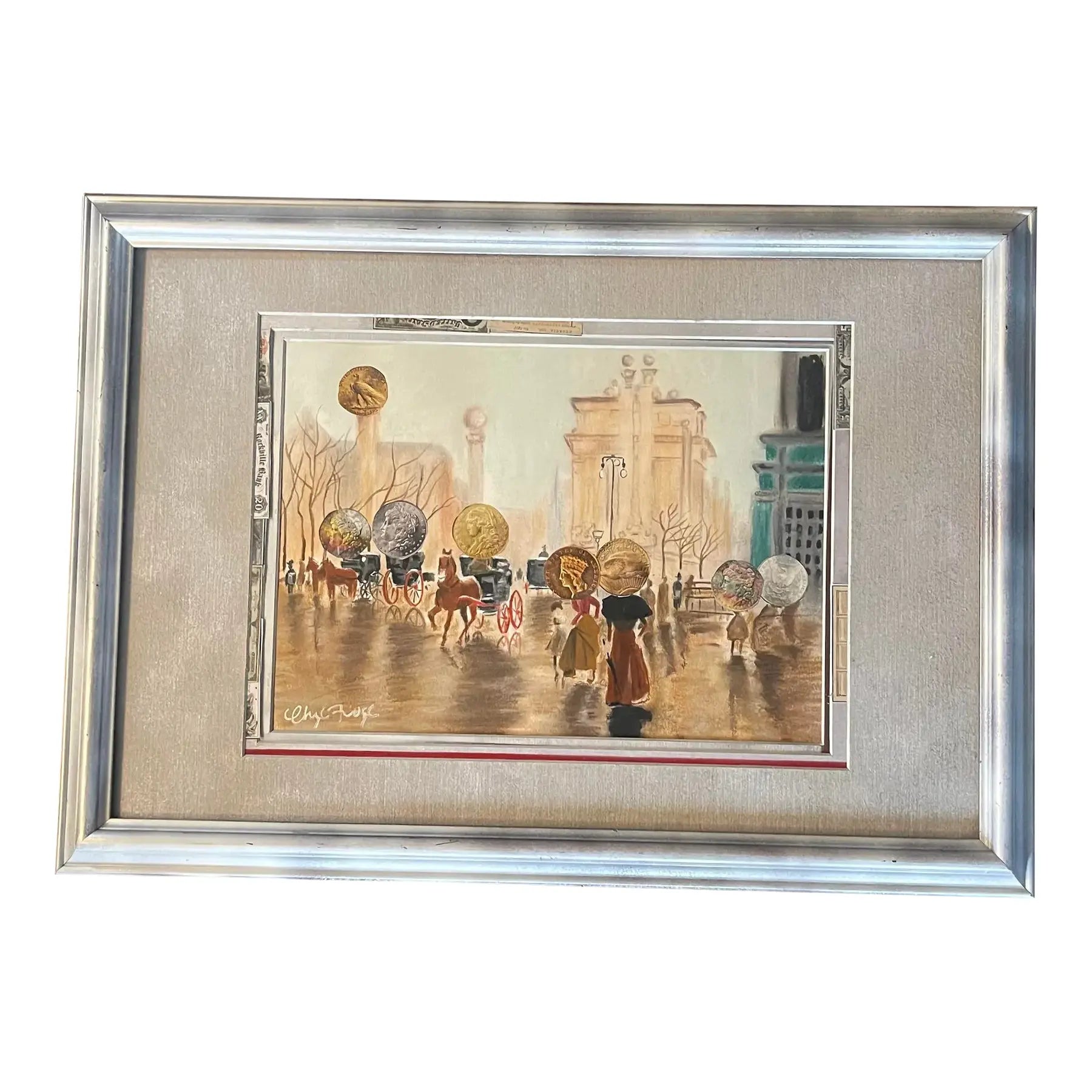 “Old Money in Paris” – Mixed Media Protest Collage by Cheryl Fudge (Global Identity, Tariffs & Cultural Movement)