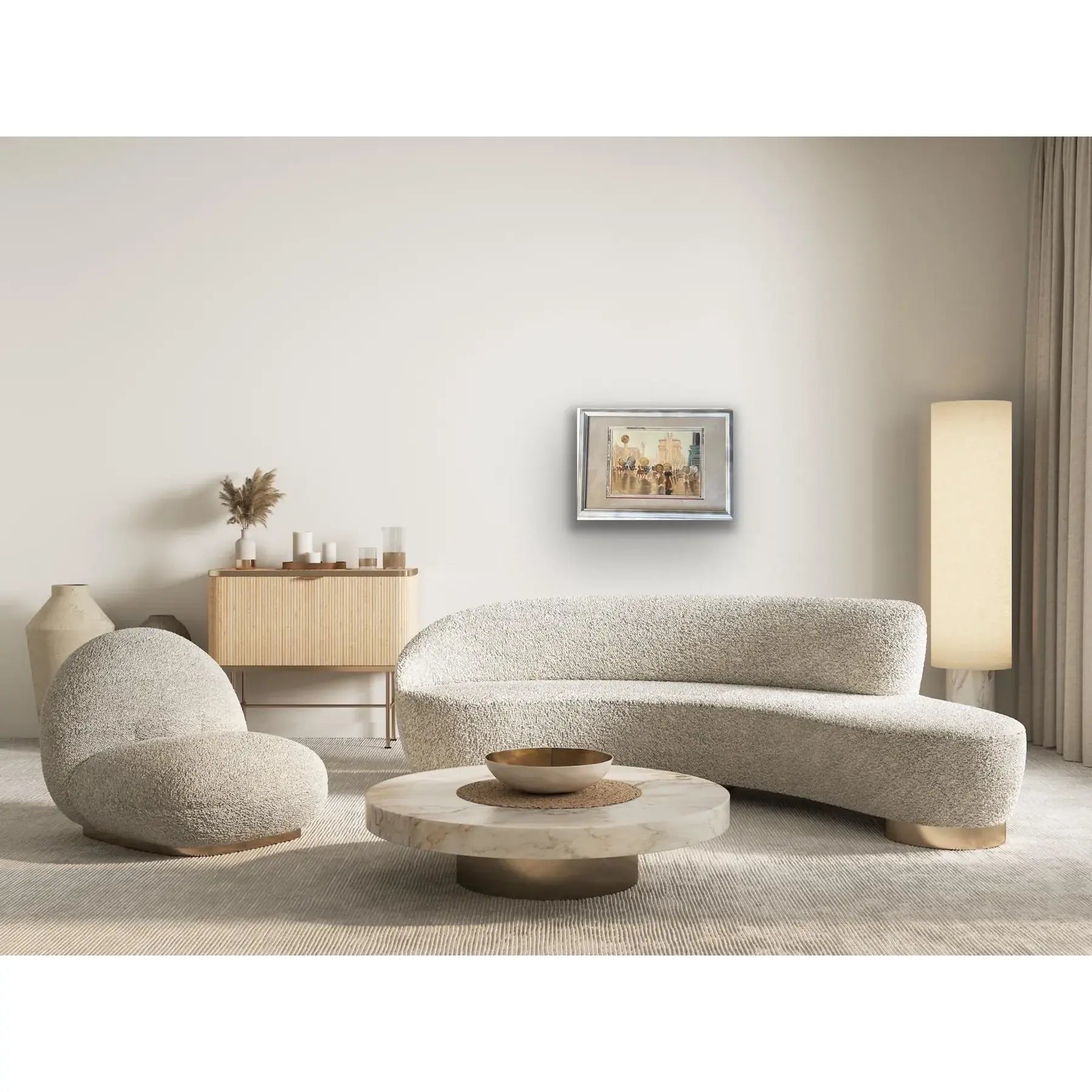 This work stands as a protest against policies—such as isolationist tariffs and cultural fearmongering—that attempt to define worth by origin, and restrict the natural flow of people, ideas, and commerce. Fudge’s figures walk, ride, and move through a timeless Paris—unaware of the artificial lines drawn around them.